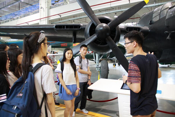 下午2点,大家又来到了航空航天博物馆进行参观。走进航空航天博物馆,师生们被不同功能、不同名称的飞机吸引住了。经过北航研二志愿者的讲解,香港城大同学们对各架飞机的基本信息、历史、特性有了更深一步的了解。他们时而仰头观望硕大的飞机,时而向讲解员询问并请教。在同学们的热情追问下,讲解员为同学们绘声绘色地描述了航空史上声名赫赫的一些飞机