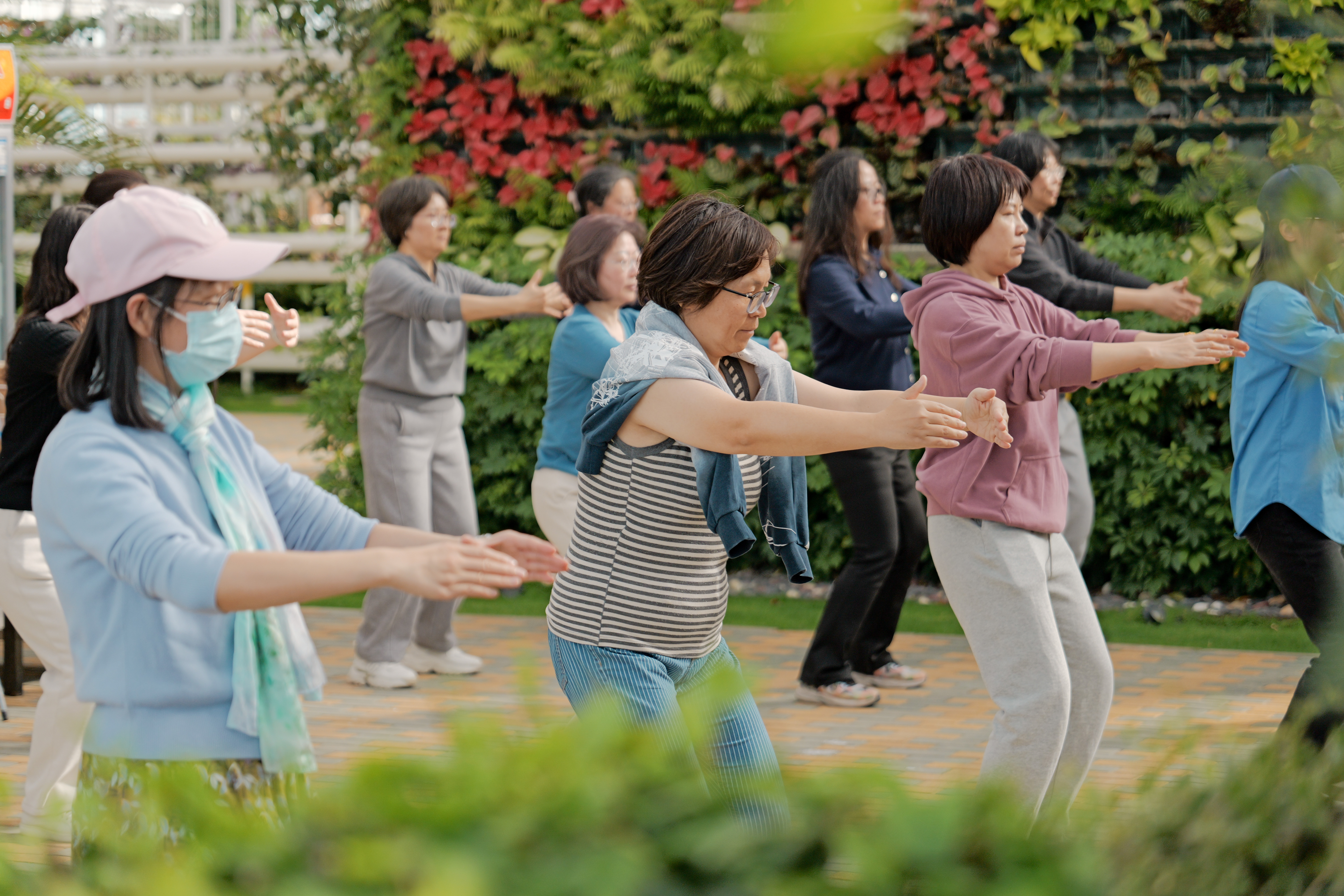 随后,公司工会邀请北航体育部副教授周若夫老师,为大家教授传统养生功法——八段锦。教职工们在周老师的指导下,一招一式地练习,感受中华传统养生文化的魅力。舒展筋骨、调和气血,八段锦不仅让大家在忙碌的工作之余放松身心,也促进了健康生活理念的推广。