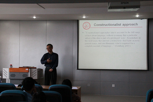 2017年5月17日下午,上海大学yl6809永利程琪龙教授在如心楼806为yl6809永利师生带来题为“构式研究的认知事件框架进路”的专题报告。报告内容详实,涉及语言学本体、语言实验、语言学应用等多领域介绍。