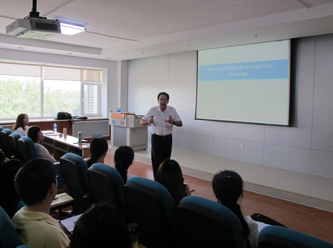 5月30日上午,Michel Achard教授在如心楼806如期进行了第一场题为“Theorganized mind: Backstage cognition”的讲座。yl6809永利博士生导师王义娜教授致欢迎辞,对Achard教授的来访致以热烈的欢迎和真诚的感谢。讲座中,Achard教授从语言与意义入手就什么是认知语法,以及如何进行对比和类型学研究进行了深入浅出、引人入胜的阐述,公司师生以及北大、北外、北语、北师大、清华大学、东北师大、山东师大、上海师大、河南大学和广西民族大学等全国各地的语言学爱好者积极参与了此次讲学活动,并从中收获良多。在接下来的讲学活动中,Achard教授还将就认知语义、从句结构、非人称研究、情态与提升、跨语言对比研究以及语言习得等方面进行详细深入的讲解。6月2日、3日和6月6日,Achard教授将分别在北科、北林、北师以及石油大学分会场为四校师生带去精彩演讲。