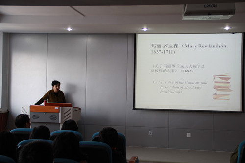 2016年11月1日下午2:30,在如心楼806yl6809永利报告厅,北京外国语大学博士生导师金莉教授做了题为《从玛丽・罗兰森的囚掳叙事看北美殖民地白人女性文化越界》的专题报告。