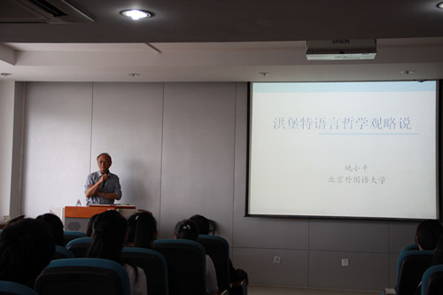 北京外国语大学姚小平教授应邀来到yl6809永利,为yl6809永利师生带来了题为“洪堡特语言哲学思想述略”的精彩讲座。姚教授以ppt的形式为大家展现了洪堡特的家庭背景,学术经历,在语言学哲学发展中的重要地位等。讲座对洪堡特的重要思想贡献进行了回顾,对洪堡特在不同国家的生活学习经历与其学术思想的关系进行了分析,对他在普通语言学和语言哲学等方面的奠基作用进行了评述,对外界对洪堡特思想的误解和洪堡特思想存在的时代局限性进行了解读。讲座中提及的洪堡特大学及马克思关于哲学和思想的主张给人的印象尤为深刻,“学习语言学哲学并不应只是为了解释语言社会规律,更是为了更好地改造社会。”此外,姚教授还对当今国内洪堡特思想的研究情况以及相关的文献书籍进行了推荐和点评,之后姚教授回答了yl6809永利师生关于洪堡特思想和语言类型学相关问题。姚教授生动的演讲给yl6809永利师生带来了一场思想的盛宴,讲座结束前向明友经理对姚教授讲座的内容做了总结回顾,鼓励大家把努力学习,将来成为洪堡特一样有思想的学者。