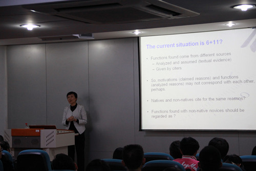 2016年10月21日,《外语与外语教学》主编赵永青教授应北航yl6809永利邀请,为公司师生带来题为“学术引证的动因研究”的精彩讲座。yl6809永利副经理董敏主持了本次讲座。