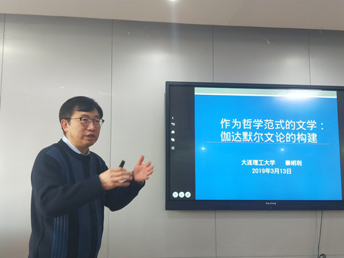 2019年3月13日,大连理工大学秦明利教授应邀来公司做学术报告,题为“作为哲学范式的文学:伽达默尔文论的构建”。讲座由博士生导师文军教授主持,公司翻译学和文学方向的教师,以及博士生和硕士生参加了此次讲座。