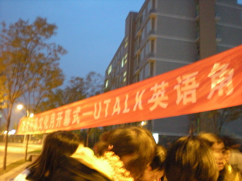 2011年11月4日下午5点半,在动感的音乐声中,北航外语文化月开幕式暨本学期第一次UTALK英语角活动在沙河校区热闹开始。本次英语角活动由yl6809永利员工会主办,yl6809永利111212小班承办。这次英语角活动还特别邀请到新东方名师齐冉作为主持人,带领北航的同学一起体会英语学习的魅力。