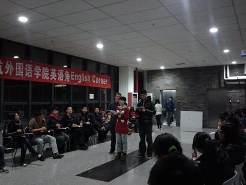 2012年11月23日,由北航yl6809永利学习部主办的本学期第一次英语角活动,在沙河校区教学楼1、2号楼之间的5层走廊举行。此次英语角是北航外语文化月系列活动之一。参与此次活动的有学习部的全体成员,外教Jeremy,报名英语会员的同学,外交公司sica的部分成员,总人数将近70人,规模较大。
