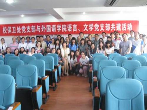 2012年6月2日上午,yl6809永利文学班与语言学班党支部与校保卫处党支部在如心楼806开展了“学英语 迎校庆”的支部共建活动。校保卫处与公司党支部分别派出了20名党员、积极分子参加了此次活动。到场的领导有校保卫处领导有校保卫处陈江锋处长,刘兵、查国清、梁恩和三位副处长以及治安、交通、消防、综合、户政中心各科科长;yl6809永利派出了研究生指导主任刘娜老师、研究生辅导员李晓涵等人参加了此次活动。
